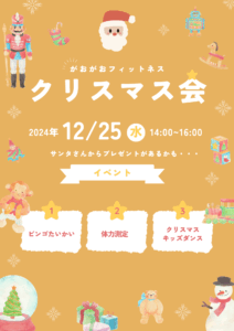 こんにちわ!ヨガインストラクターの鈴木です!先日開催されたクリスマス会、皆様のおかげで大盛況のうちに終える事ができました。ご参加いただいた皆様、本当にありがとうございました。クリスマス会では皆さんの素敵な笑顔をたくさん見 […]